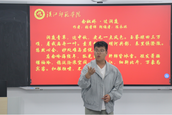 活动伊始,主持人向同学们致以诚挚的问候和节日美好的祝福。首先,陈永琪、田佳欣、彭慧怡三位同学依次进行诗词朗诵展示,高亢激昂的朗诵,淋漓尽致的把经典诗文内在的真挚感情再现出来。其次,在诗词飞花令环节,同学们热情的参与脱口而出含“月”或“秋”的诗词,展开一场跨越千年的诗意对话,让千年文脉生生不息。