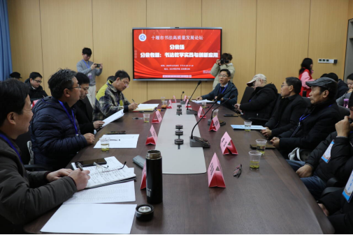 下午两点,论坛分设“书法资源整合与协同发展”“书法教学实践与创新应用”两个主题分会场,在求真楼C202、C406同步进行。来自十堰市各级书协、群艺馆、美术馆及大中小学、书法培训机构的代表,与学校文学院书法教研室师生代表围绕分会主题,结合自身实践经验,就书法临创转换的难点、书法专业人才培养目标、中小学书法特色创新、书法普及等热点问题深入研讨,进一步凝聚了校地协同发展共识,明确了书法教育创新与资源整合的具体方向。随后,闭幕会在求真楼C202举行,对本次论坛的研讨成果进行总结梳理,为后续合作发展奠定坚实基础。