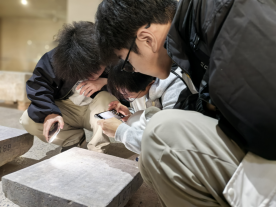 考察首站聚焦十三朝古都洛阳。师生们率先探访世界文化遗产龙门石窟,在卢舍那大佛的恢弘造像前驻足凝望,细品石窟题记中北魏造像的刀刻笔意,直观感受魏碑书法兼具雄健与灵动的艺术特质。随后走进龙门博物馆,通过馆藏历代墓志,系统对比不同时期书法风格的流变轨迹,构建起对书法演变的初步认知框架。